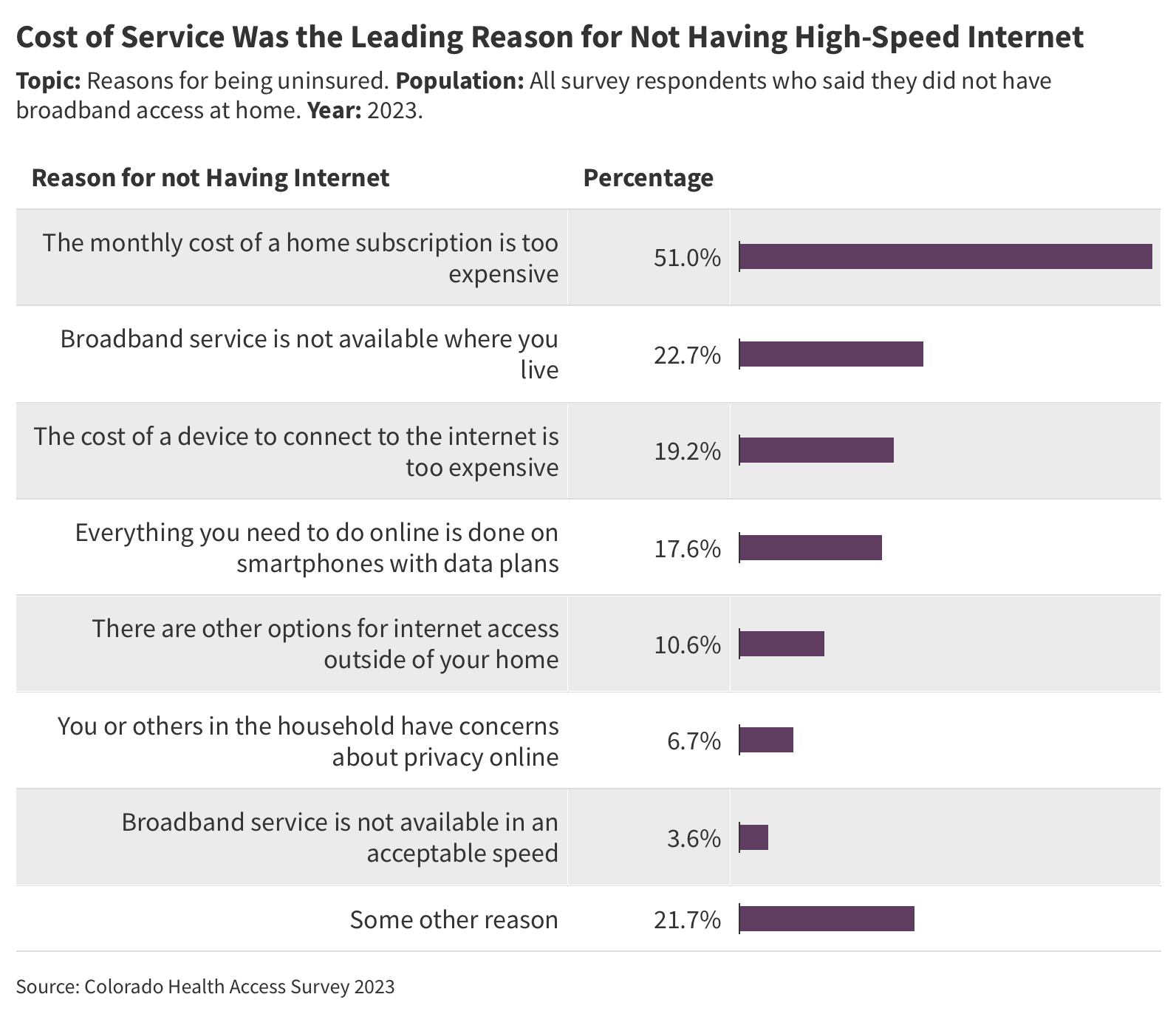 For the first time, the 2023 CHAS asked respondents about broadband internet access and their reasons for not having it.