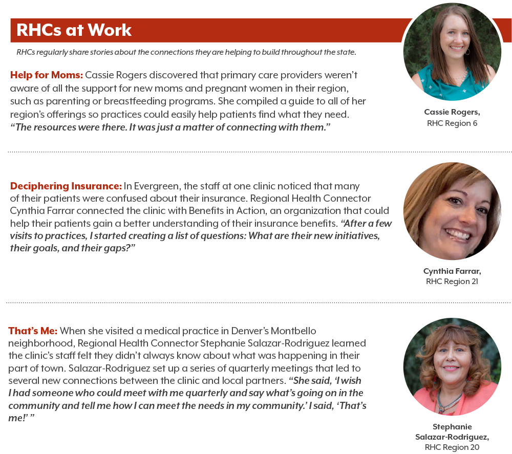 12 Colorado Department of Public Health & Environment. “Community-clinical Linkages.” https://www.colorado.gov/cdphe/domain-4-community-clinical-linkages. Accessed July 18, 2017.