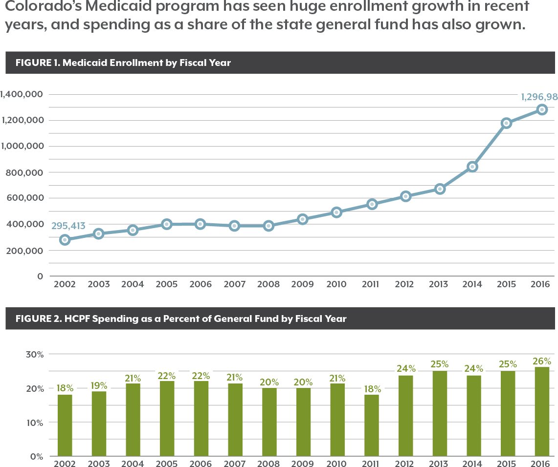 Enrollment in Health First Colorado, the state’s Medicaid program, has grown rapidly, and the state’s costs have grown, too. More than 1.3 million Coloradans are covered by Medicaid, and the shared federal-state program now accounts for 26 percent of the state General Fund, up from 18 percent in fiscal year 2001-2002.